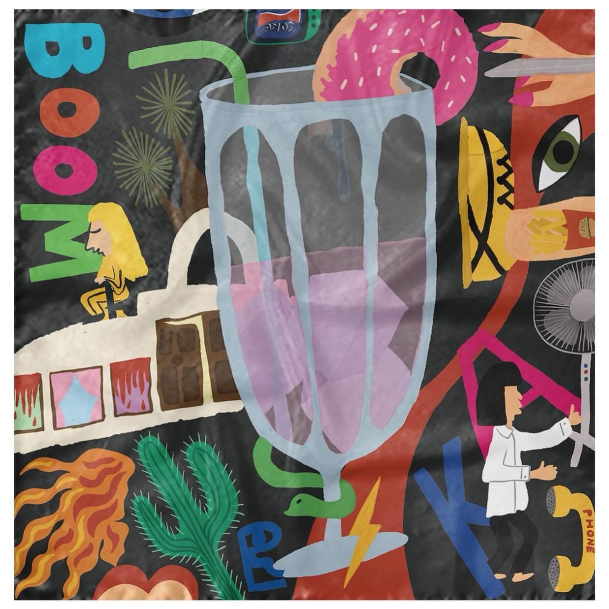 With a milkshake in her hand, a plastic woman plots revenge in the name of love. She prays and marries a man transformed into a snake, in a bar with neon signs and warm beer. She enters a church in Texas to kill the snake. A radio starts, “Girl you’ll be a woman soon” is played, a fan kicks on, there’s an explosion, and the place is filled with donuts and fries. We are all, if you think about it, present in this explosion, and only the snake knows what will happen before the end credits roll.